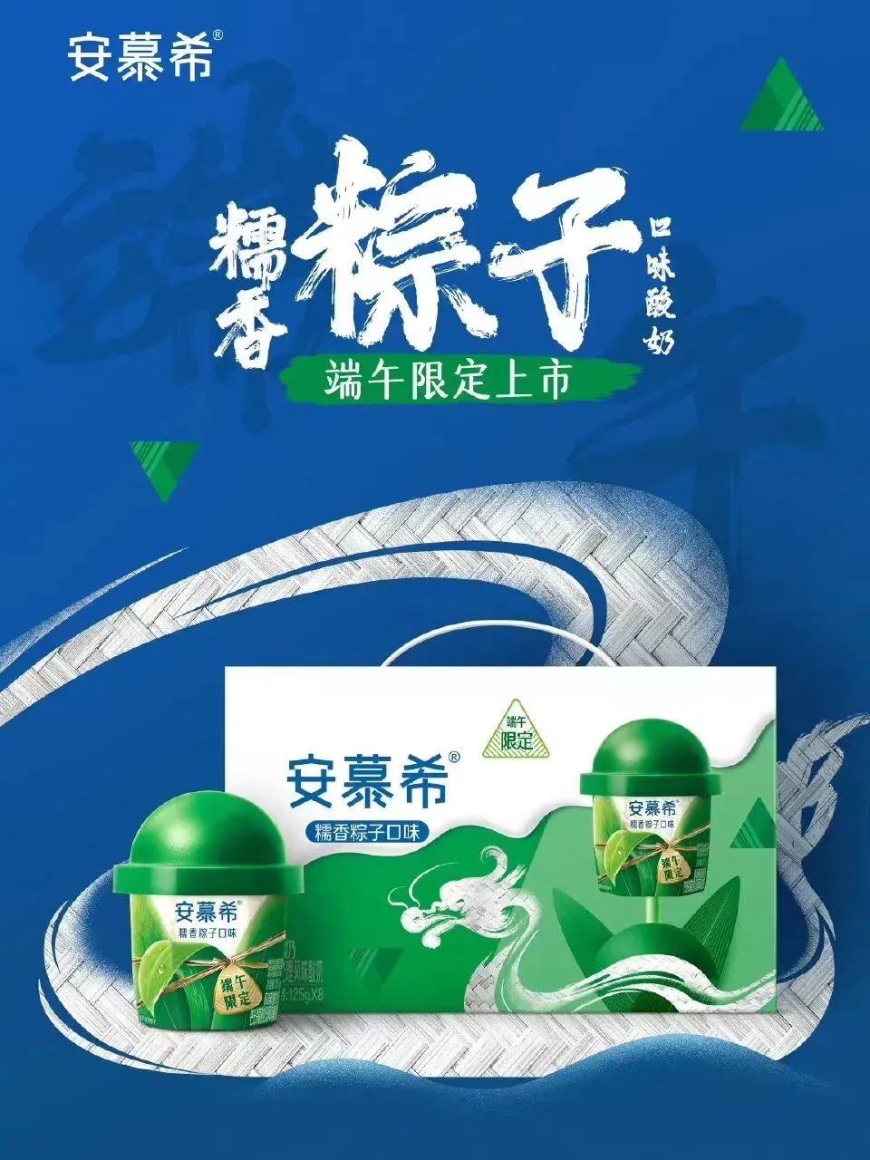 近日,安慕希糯香粽子口味酸奶端午限定上市,為常溫凝酪型勺吃酸奶。