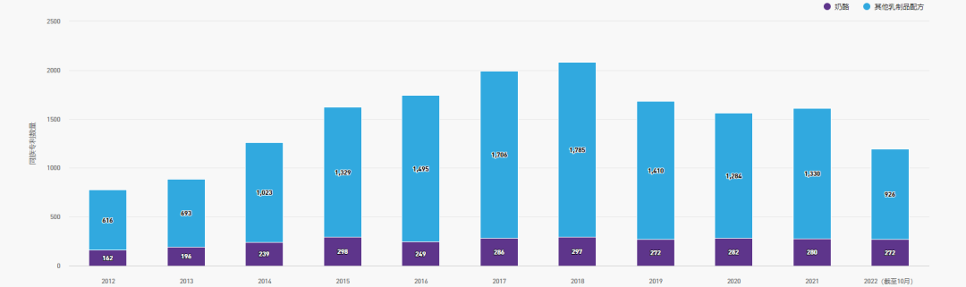 近年來與奶酪配方相關的專利有所下降,