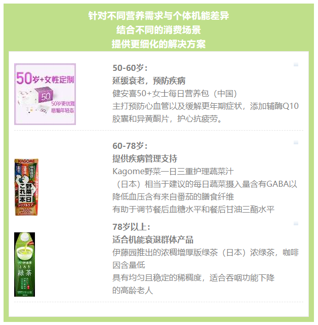營養成分和健康宣稱是老年消費者的普遍訴求,適齡宣稱成為新的機會點。