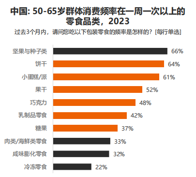 糖果巧克力成為老年消費者有興趣購買的產品種類,位列第二(39%)。