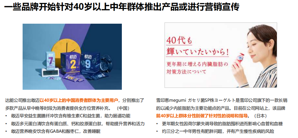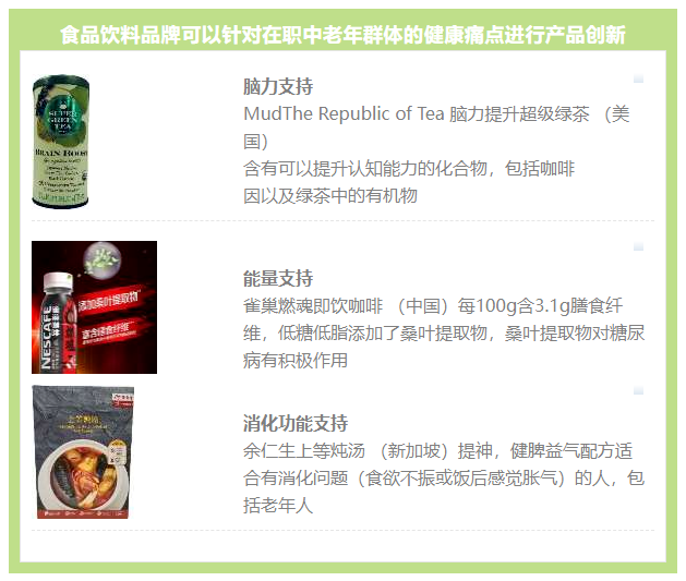 食品飲料產品可以為老年消費者高發的健康問題如三高、心血管問題等)提供健康支持