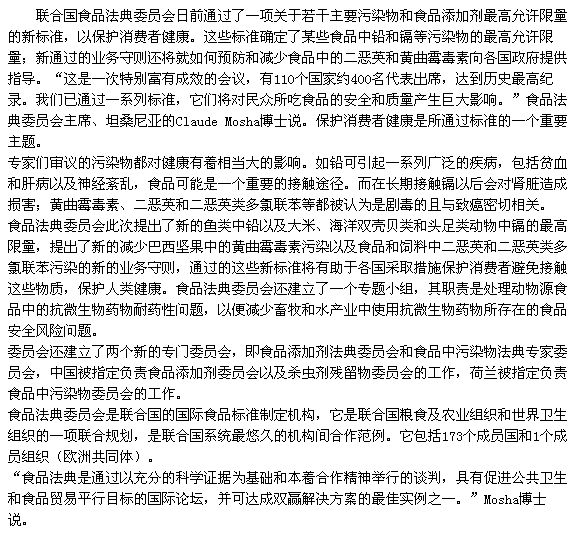 聯合國頒布新食品法典
