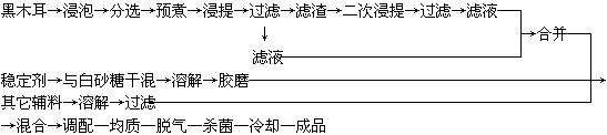 1.材料:黑木耳;白糖;蛋白糖;檸檬酸;β-環狀糊精;蜂蜜;穩定劑:TKGO2。