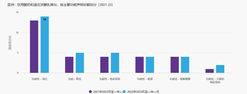 在過去四年中,在飲用酸奶類別中,大多數功能性聲明都出現了增長,其中消化支持和免疫健康聲明尤為突出。許多品牌還專注于開發飲用酸奶,通過維生素和礦物質強化促進兒童健康成長。