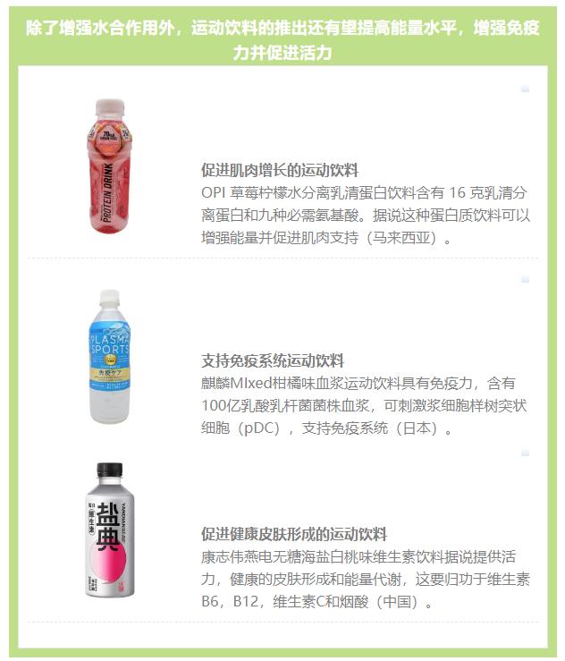 除了解渴和補液需求外,品牌還在探索功能健康的其他領域,如心理健康、免疫力、肌肉鍛煉和脂肪燃燒。