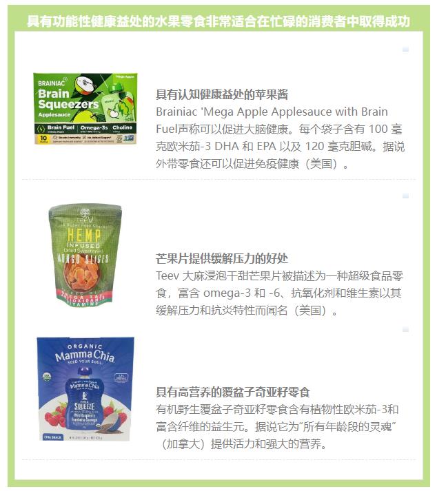 由于水果已經被消費者視為健康,依靠水果的一些固有功能或通過創新搭配創造新的功能不僅可以提高水果的聲譽,還可以使其與當代健康價值觀保持一致。